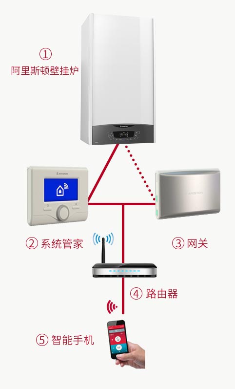 網關(若內置WIFI的壁掛爐則無需網關)通過網關,可以讓你將你的壁掛爐接入網路,這樣就可以通過手機智能控制壁掛爐4